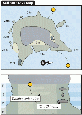 “Sail Rock” es sin duda la mejor inmersión y la más conocida del Golfo de Tailandia. Ha sido elegido varias veces como el mejor lugar de buceo de toda Tailandia por diversas publicaciones especializadas. Se trata de un gran pináculo de granito en forma de iceberg que se encuentra a mitad de camino entre las islas de Koh Tao y Koh Phangan y que emerge desde un fondo arenoso a 40 m. hasta 15 m. por encima de la superficie del agua. En torno a éste existen otros pináculos pequeños que no llegan a la superficie. Debido a que en la zona no existen otras grandes formaciones rocosas, actúa como punto de reunión de una variada vida marina.