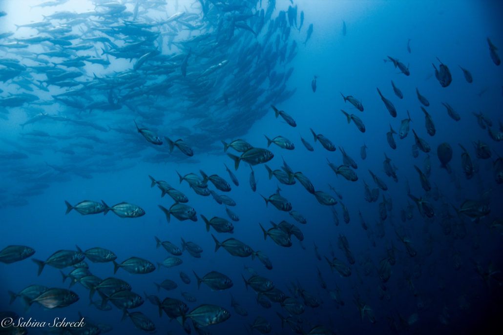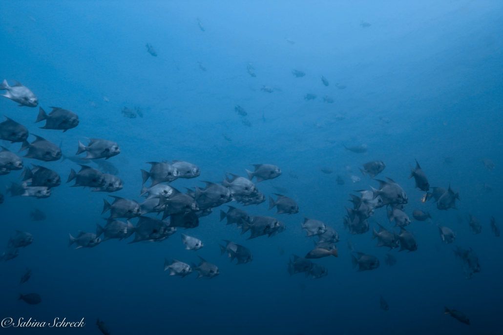 Hannibal Bank es un punto de buceo caracterizado por la presencia masiva de pelágicos y está considerado como uno de los lugares clave del Corredor del Pacífico Oriental donde confluyen las principales corrientes oceánicas. La profundidad máxima es de 46 m., fuera de nuestros límites de buceo recreativo. Se puede hacer la inmersión a la deriva si encontramos corriente. Desde los 36 m. ya encontramos enormes bancos de peces, entre ellos peces limón gigantes (Seriola dumerili) y diversas especies de pargos y meros. Entre los depredadores destacan los tiburones martillo, grandes tiburones puntas negras y, ocasionalmente, tiburones tigre.