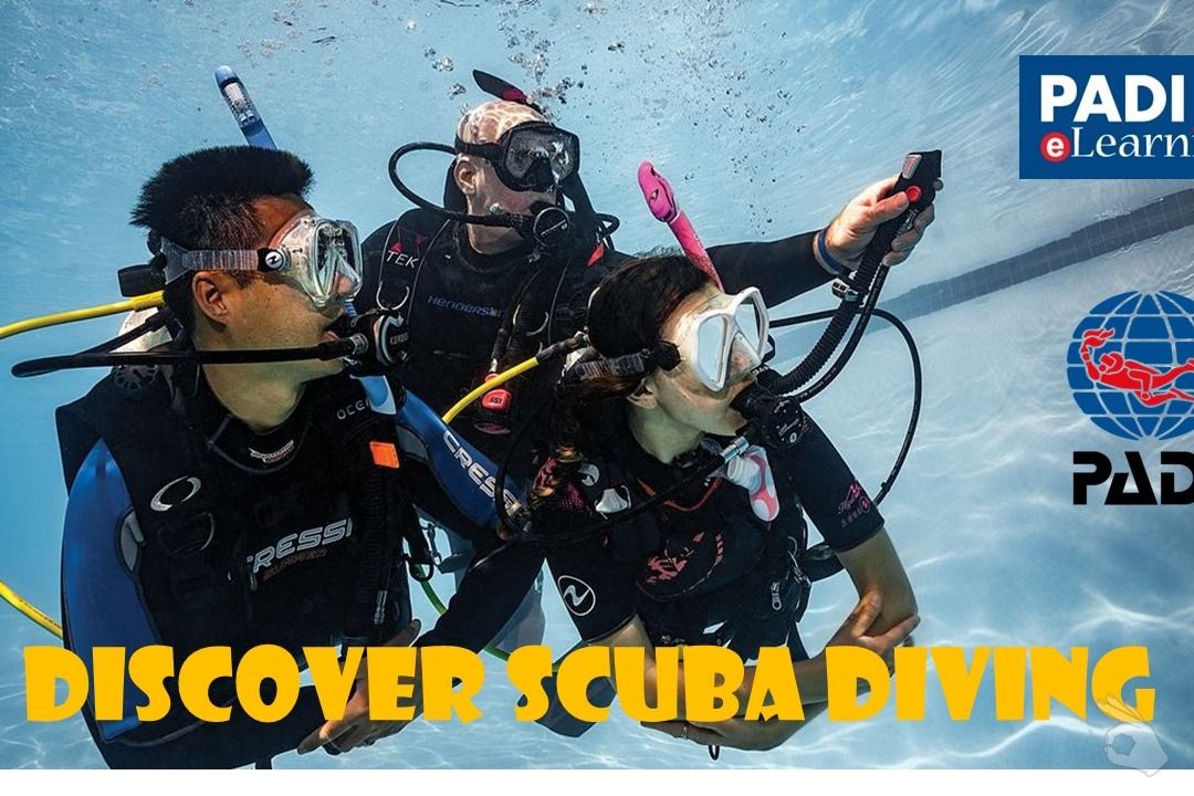 *Bautismo Oficial de PADI ¿Alguna vez te has preguntado lo que se siente al respirar bajo el agua? Si deseas probar el buceo, pero no estás lo suficientemente preparado para dar el salto a un curso de certificación, Discover Scuba Diving es para ti. Aunque no es un curso de certificación de buceo, Discover Scuba Diving es una rápida y fácil introducción a lo que es explorar el mundo subacuático. Esta experiencia se compone de dos partes una teórica y otra práctica.
