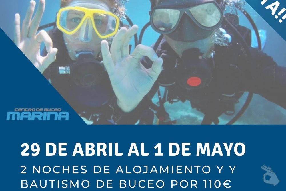 Aprovecha esta oferta única, dos noches de alojamiento y dos bautizos de buceo, solo por 110 euros por persona!!