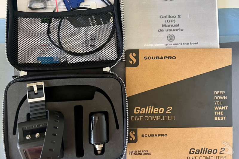 Ordenador de buceo Scubapro Galileo 2 con transmisor y accesorios en su maletín y caja original