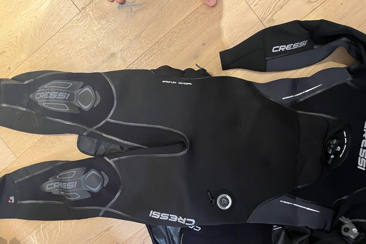 Vendo mi traje seco, tiene dos inmersiones esta nuevo, cuello de neopreno, manguitos de neopreno y pies tipo calcetin, incluye latiguillo y capucha, incluyo bolsa de transporte de cressi drylastic.