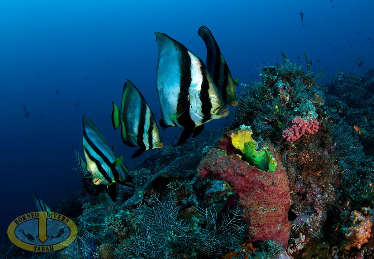 Descendiendo por la pared suavemente hasta 30 m. encontramos escuelas de pequeños peces (mariposa, cirujanos) y una gran cantidad de coral negro de todos los tamaños. Las tortugas nadan junto a los buceadores buscando su compañía. En la parte alta del arrecife grupos de tiburones de puntas blancas descansan sobre la arena. En el azul avistamos tiburones grises de arrecife, escuelas de jureles, napoleones y atunes gigantes. Los famosos bancos de barracudas los veremos habitualmente cerca de la superficie. Se cuentan por cientos o miles, moviéndose tranquilamente en perfecto sincronismo en una perfecta espiral.