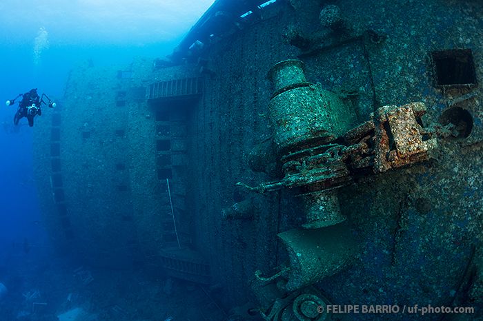 Bucear en este pecio es revivir esta gran tragedia, ya que los enseres personales de los pasajeros están diseminados por todas partes. A excepción del puente, el salón y parte de la bodega, el resto del interior del pecio es delicado, y algunos buceadores han pagado con su vida el hacer caso omiso de las recomendaciones, sumándose a la lista de los casi 130 cuerpos que aún permanecen en el interior. El casco reposa sobre su costado de babor, y sobre el fondo son claramente visibles las barcas de salvamento, que nunca pudieron utilizarse.