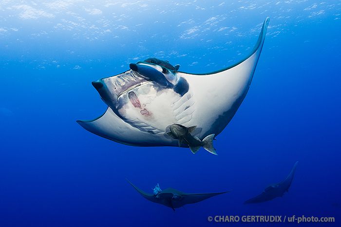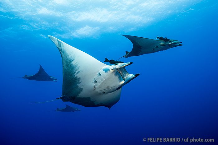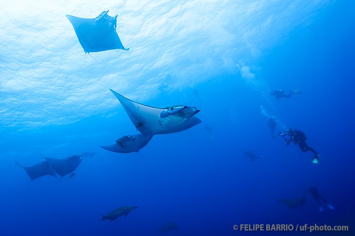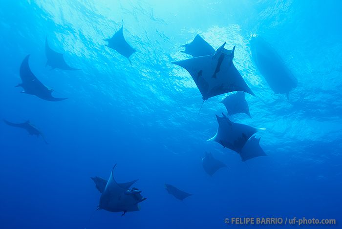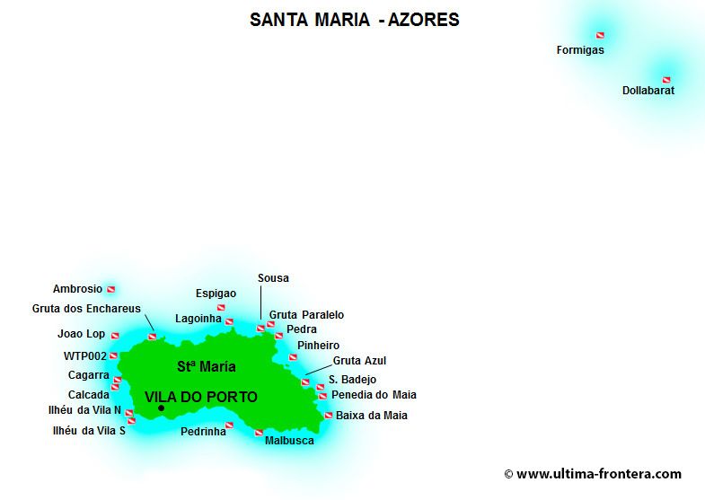 Una de las mejores inmersiones de Azores. El barco se amarra a una boya sujeta a la cumbre de una montaña submarina cuya parte menos profunda está a 46 m. Esta boya está a unos 12 m. de profundidad y nos servirá de referencia para la observación de los grupos de móbulas que se congregan aquí desde finales de junio a mediados de octubre. Lo habitual son bancos de entre 10 y 20 ejemplares pero pueden llegarse a juntar 50 al mismo tiempo. También son frecuentes bancos de barracudas o algunos atunes.