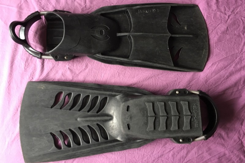 Aletas Hollis F2 talla médium /large para 42/44. Peso solo 0,9 kg por aleta. Buen estado. Precio 75€ más envío.